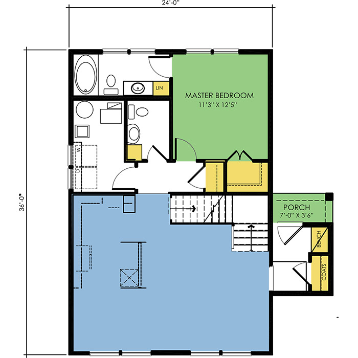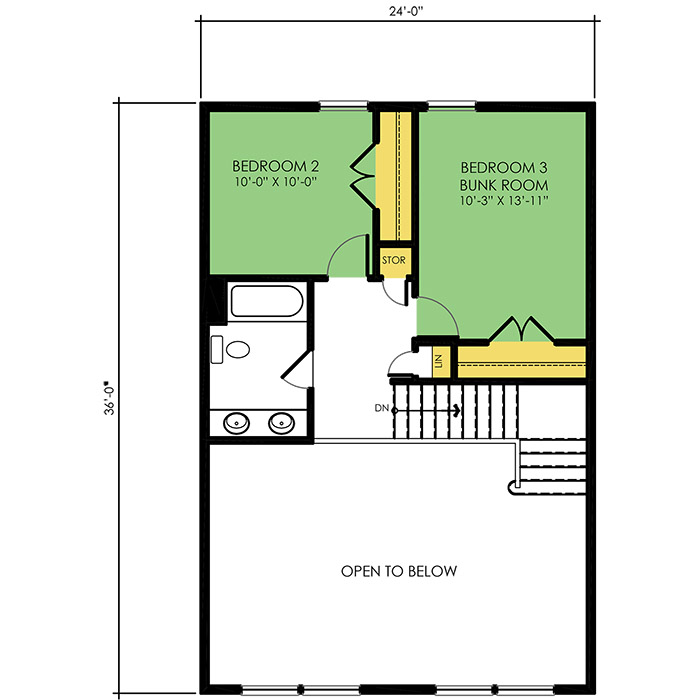 A part of our Vacation Series, the Arrowhead floor plan features 3 bedrooms and 2.5 bathrooms with a foot print of 24x36 feet and 1377 total square feet of living space. Floor Plan #VL301
