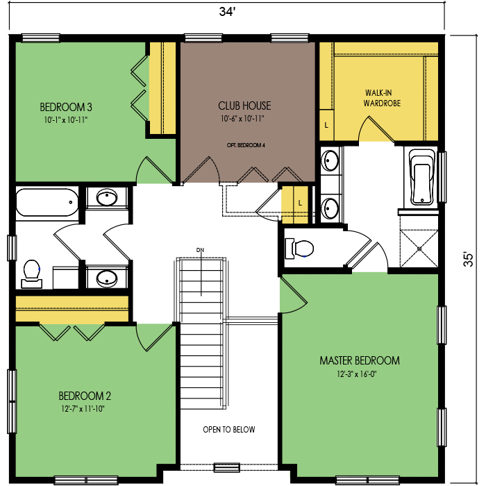A part of our Dream Series, the Black Walnut 2-story floor plan features 3 bedrooms and 2.5 bathrooms, a 2-car garage, a footprint of 56x35 feet, and 2296 total square feet of living space. Floor Plan #DR293