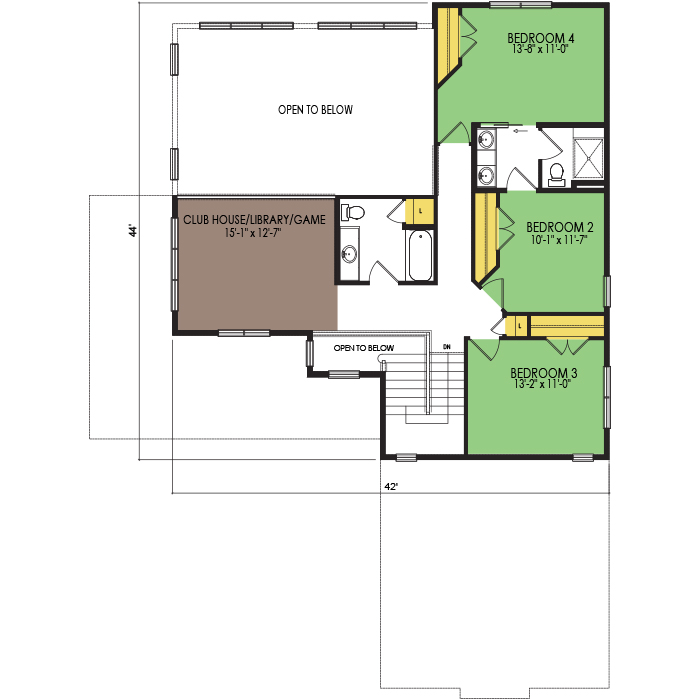 A part of our dream series, the tamarack floor plan features 3 bedrooms and 1.5 bathrooms with a foot print of 44x30 feet and 1342 total square feet of living space.