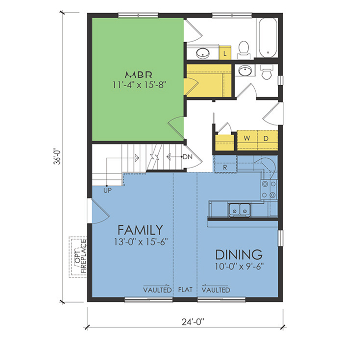 A part of our Wausau Originals, the Chalet iv floor plan features 3 bedrooms and 2.5 bathrooms with a foot print of 24x36 feet and 1301 total square feet of living space. Floor Plan #WO631