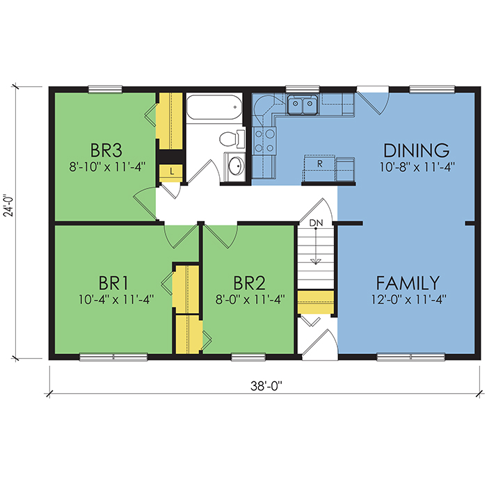 A part of our Wausau Originals, the Clinton floor plan features 3 bedrooms and 1 bathroom with a foot print of 38x24 feet and 912 total square feet of living space. Floor Plan #WO100