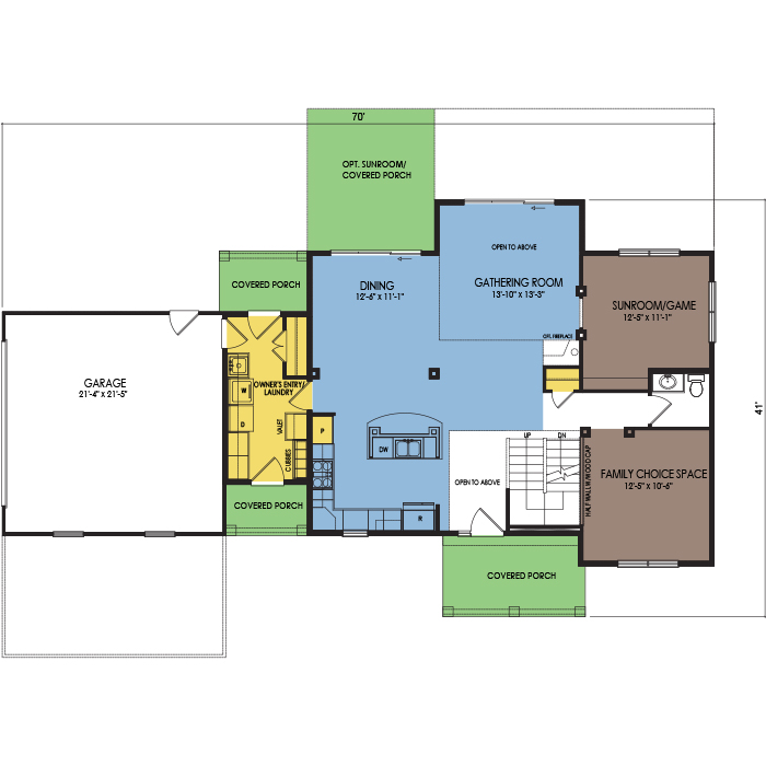 A part of our dream series, the tamarack floor plan features 3 bedrooms and 1.5 bathrooms with a foot print of 44x30 feet and 1342 total square feet of living space.