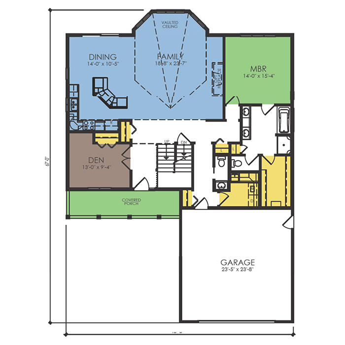 A part of our dream series, the tamarack floor plan features 3 bedrooms and 1.5 bathrooms with a foot print of 44x30 feet and 1342 total square feet of living space.