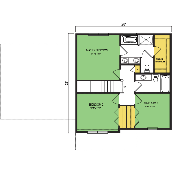 A part of our dream series, the tamarack floor plan features 3 bedrooms and 1.5 bathrooms with a foot print of 44x30 feet and 1342 total square feet of living space.